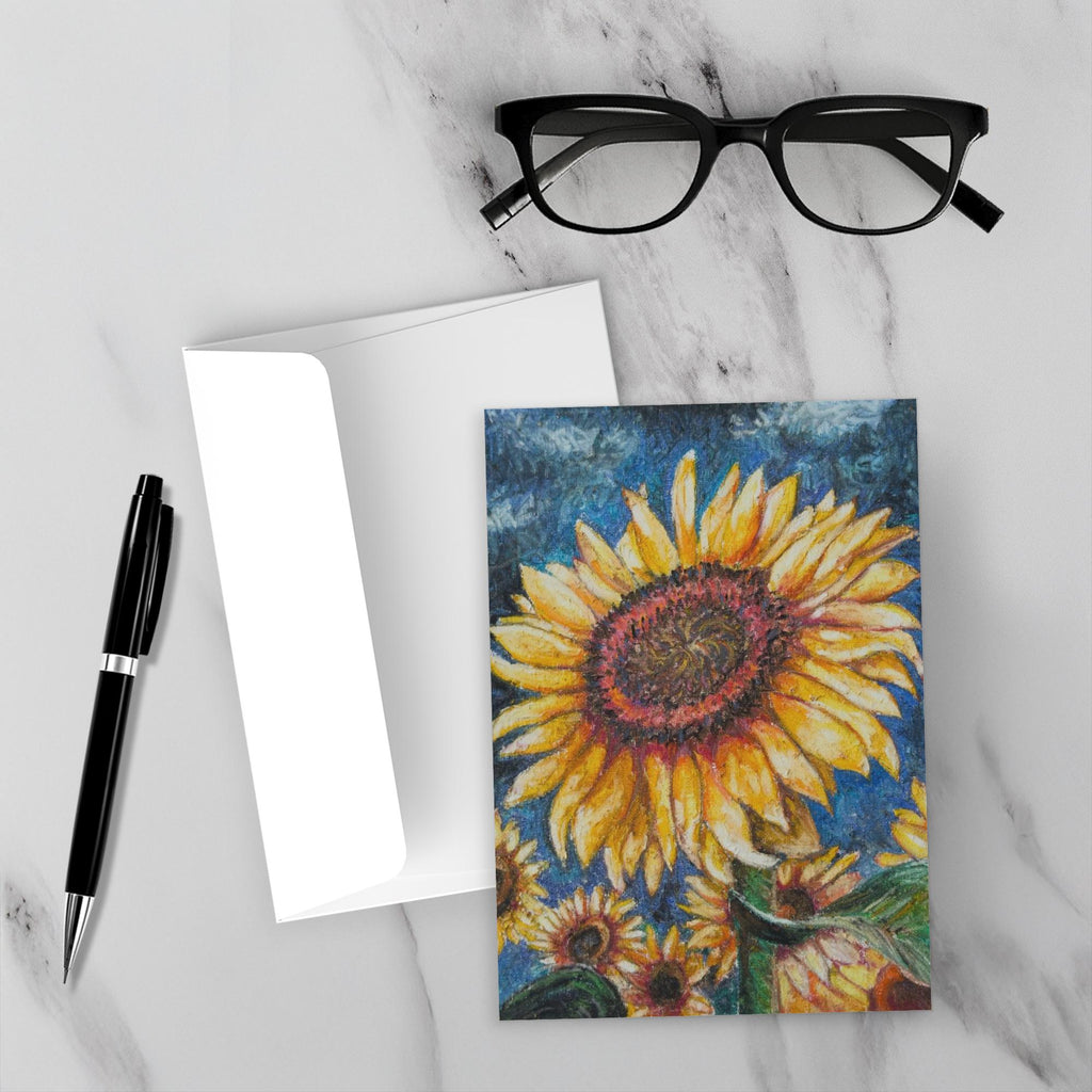 These high quality paper cards come pre-folded, packed in cello sleeves per 10 cards, and includes a white envelope for each card. Works well with regular ballpoint pens after short drying time. Three packs sizes available of 5, 10, & 25 note cards.